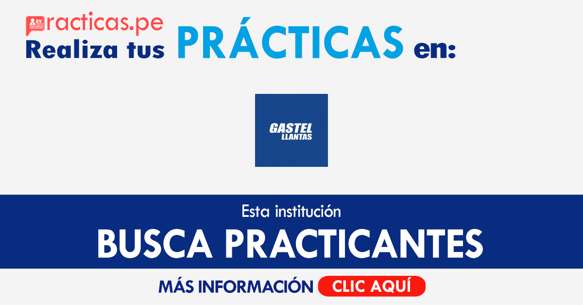 Si quieres iniciar tu desarrollo profesional en esta institución (GASTEL LLANTAS SRL) te animamos a participar de sus procesos de selección de practicantes y asi formar parte de su equipo.