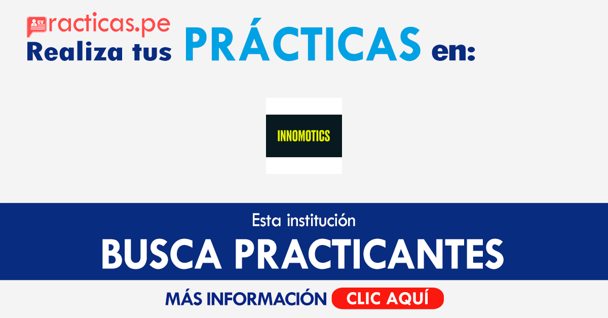 Si quieres iniciar tu desarrollo profesional en esta institución (INNOMOTICS S.A.C) te animamos a participar de sus procesos de selección de practicantes y asi formar parte de su equipo.