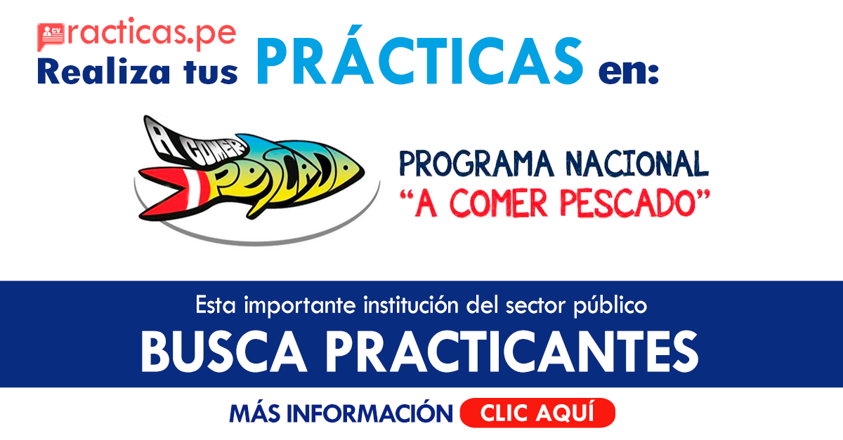 Si quieres iniciar tu desarrollo profesional en esta institución (PROGRAMA NACIONAL A COMER PESCADO) te animamos a participar de sus procesos de selección de practicantes y asi formar parte de su equipo.