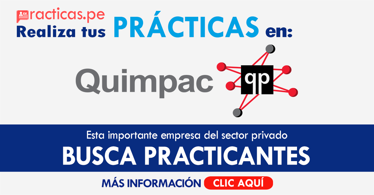 Si quieres iniciar tu desarrollo profesional en esta institución (QUIMPAC S.A.) te animamos a participar de sus procesos de selección de practicantes y asi formar parte de su equipo.