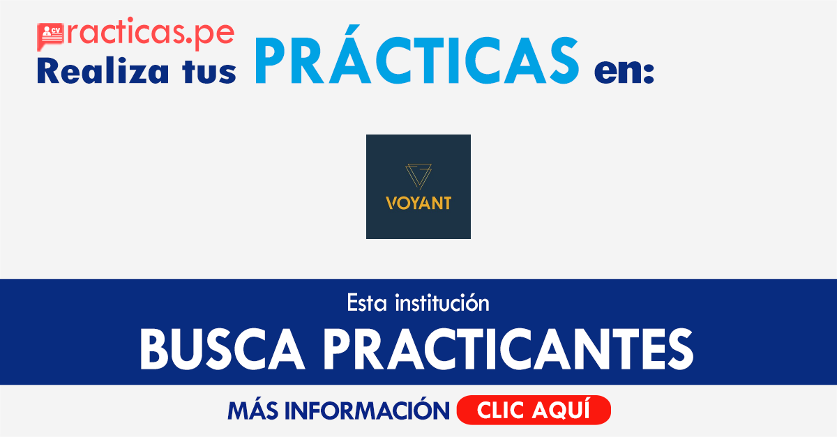 Si quieres iniciar tu desarrollo profesional en esta institución (Voyant S.A.C.) te animamos a participar de sus procesos de selección de practicantes y asi formar parte de su equipo.