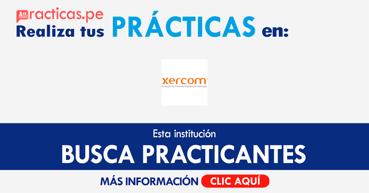 Si quieres iniciar tu desarrollo profesional en esta institución (XERCOM PERU SAC) te animamos a participar de sus procesos de selección de practicantes y asi formar parte de su equipo.